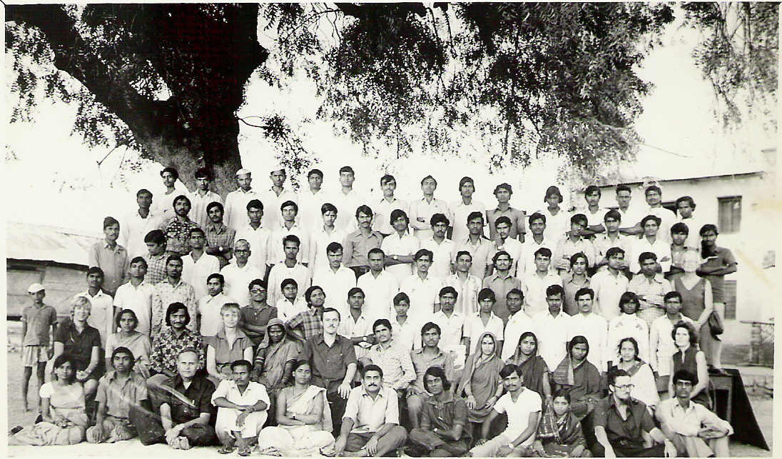The team that arrived in Maliwada village on September 1, 1976 struck me as the most impressive I had ever seen us assemble. Not too surprising--a large part of our future appeared to be riding on what we were charged with making happen in this unfamiliar part of our world. We took up residence in what we called the Castle--an old abandoned building said to be haunted that the village gave us the use of. While we worked on preparing the training materials for the first school, villagers were constructing in the heart of the community the facility where we would house, feed and train hundreds of Maharashtran men and women in a series of eight-week classes over the next several years. One month later, on October 2nd--Gandhi's birthday and a national holiday in India--the school officially opened. These are a few pictures that capture a small part of what was happening then and over the next two years, during which time our family lived in the Castle, and Roxana and I helped to lead the Human Development Training School.